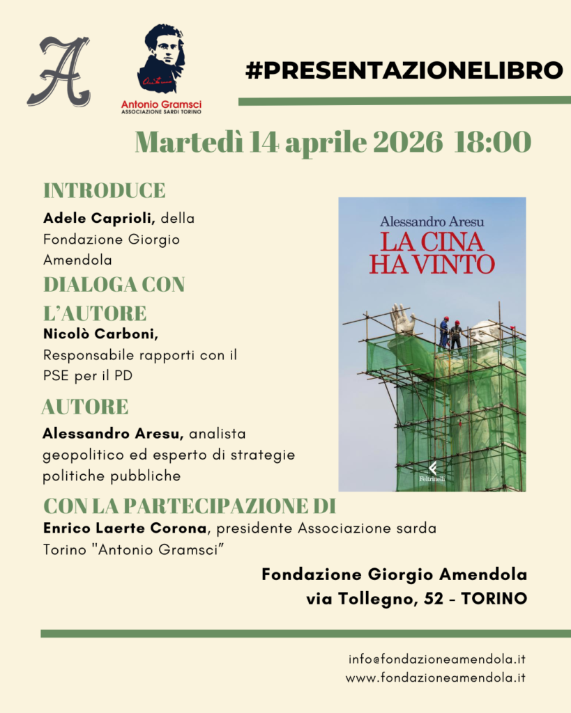 📚 Vi aspettiamo martedì 14 aprile 2026 alle ore 18:00 presso la Fondazione Giorgio Amendola (via Tollegno 52, Torino) per la presentazione del libro