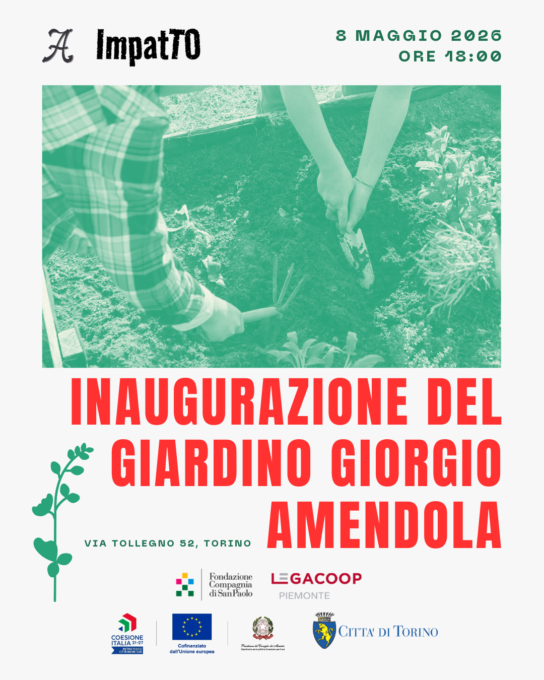 L’8 maggio alle ore 18:00 vi aspettiamo presso la Fondazione Giorgio Amendola (Via Tollegno 52) per l’inaugurazione del Giardino Giorgio Amendola, un progetto di rigenerazione urbana che restituisce alla comunità uno spazio vivo, condiviso e partecipato.